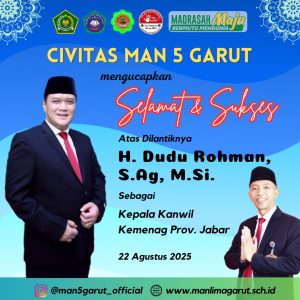 “Selamat dan Sukses atas dilantiknya Bapak H. Dudu Rohman, S.Ag., M.Si., sebagai Kepala Kantor Wilayah Kementerian Agama Provinsi Jawa Barat, pada Jum’at, 22 Agustus 2025.